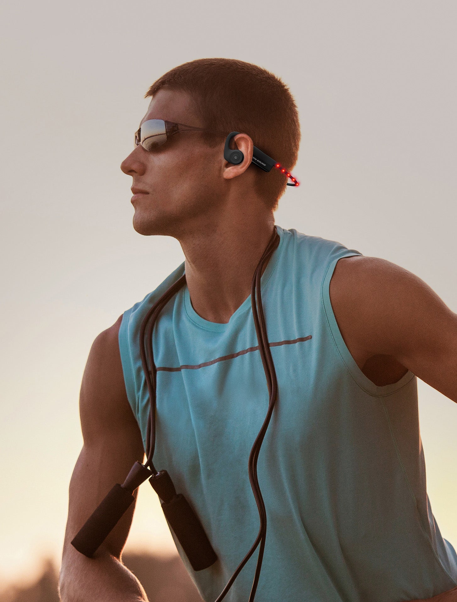 Stay active any time of day with Dashlyte+ built-in LED lights that keep you visible at night, while the open-ear design makes sure you’re always aware of your surroundings.